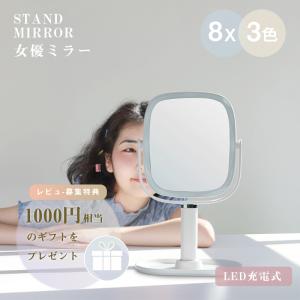 NADLE 女優ミラー メイクミラー 鏡 卓上鏡 化粧鏡 卓上 ミラー LEDライト付き 可愛い おしゃれ メイクミラー 三色調光 拡大鏡 丸 USB充電 ギフト プレゼント