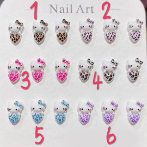 6色から選べるネイルサイズのハートを持ったヒョウ柄ネコパーツ 5個セット☆プラスチック製貼り付けデコパーツ 猫 ねこ