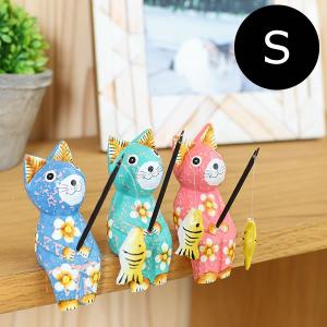 アニマル人形 BAS 釣りネコ Sサイズ パステル 魚釣り CAT お座り 木製 ウッド アジアンドール アジアン バリ島