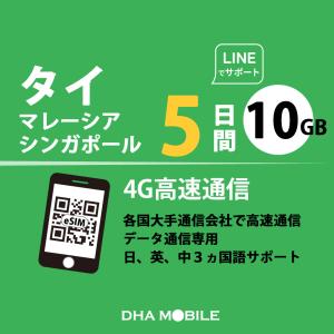 【メール送付】タイ / マレーシア / シンガポール eSIM 5日間 10GB(超えると低速128kbps) プリペイドSIM データ通信専用 esim対応simフリー端末のみ対応