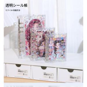 シールバインダー シール帳 透明 はがせる シール手帳 M5 A6 A7 女の子 はがせるシール収納 ホログラム クリア ミニサイズ 推し活グッズ リフィル10枚付き