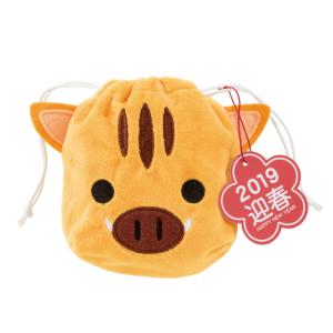 イノシシ アニマル 巾着 梅の形の迎春タグ付き 動物 アニマル 誕生日 お祝い ぬいぐるみ 巾着バッグ タッグ付き キャラクター