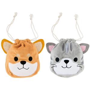 アニマル 巾着バッグ 柴犬 サバトラネコ 手ざわりが気持ちいいベロア生地でできています。 誕生日 お祝い 記念日 ぬいぐるみ キャラクター