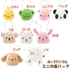 ポップアニマルミニ巾着バッグ ネコ ドッグ カエル ひつじ くま パンダ うさぎ ヒヨコ 動物 キャラクター