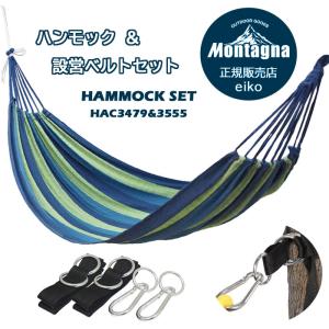 Montagna モンターナ アウトドア ハンモック & 設営ベルト セット HAC3479 HAC3555 ハンモック 広々ワイドサイズ 簡単設営 ベルト カラビナ キャンプ