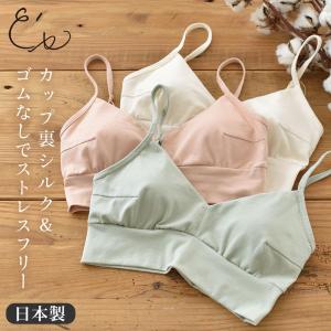 オーガニックコットン ノンワイヤーブラ 日本製 カップ裏シルク レディース グリーン ピンク ホワイト M/L