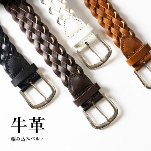 ベルト メッシュ 本革 牛革レザー 編み込み メンズ 4色 シンプル