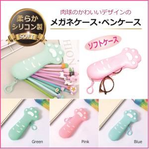 メガネケース ペンケース 肉球 猫 ネコ かわいい ソフトケース サングラスケース 送料無料/ お洒落 可愛い CASE シリコン製 パステルカラー 人気 プレゼント