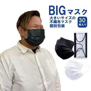大きなマスク 大きいサイズの不織布マスク 2Lサイズ 個別包装 快適な立体マスク3層 立体型3Dマスク 耳が痛くならない6mm紐 ブラック 30枚 フェザーストア