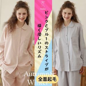 2025年 冬物新発売 【日本製】全面起毛 パステル ストライプ柄 襟元花柄刺繍 袖口 全面起毛だから片面よりさらに柔らかく、あたたかい! 綿100%