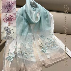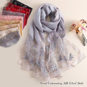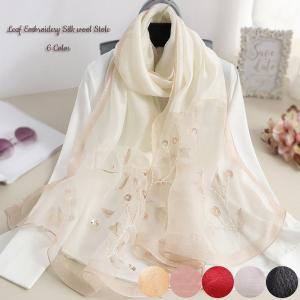 リーフ柄刺繍シルクウール大判ストール 薄手 レディース 春 夏 春夏 秋 冬 秋冬 ショール 結婚式 ラメ ギフト プレゼント 母の日 プレゼント ストール 夏