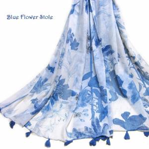 ストール/タッセル付き花とバタフライ柄大判ストール レディース 春 夏用 春夏 秋 ショール スカーフ プレゼント uv 母の日 ギフト プレゼント 入学式