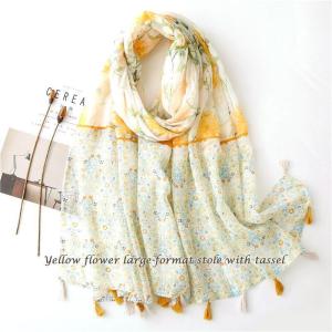 ストール タッセル付きイエロー花柄大判ストール レディース プレゼント 結婚式 ショール 母の日 ギフト 入学式 ストール 夏