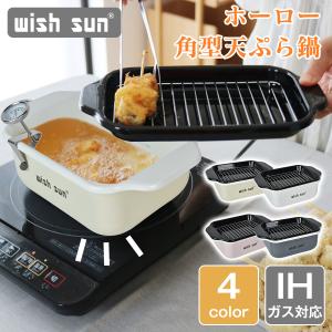 ホーロー角型天ぷら鍋 油温計付き 小さいサイズ コンパクト揚げ物鍋 IH・ガス対応 油切り網付 食洗機対応 油汚れ洗いやすい 揚げ物専用 揚げ鍋 油量目盛り付き