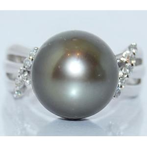 南洋黒蝶タヒチパール-12.3mm&ダイヤモンド オリジナル プラチナ デザインリング (指輪)