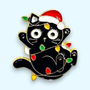 クロネコ 黒猫 猫 ネコ サンタ クリスマスライト クリスマス 動物 ピン ピンバッジ バッジ ポスト投函