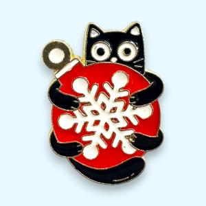 クロネコ 黒猫 猫 ネコ クリスマスボール 雪の結晶 雪 冬 クリスマス 動物 ピン ピンバッジ バッジ ポスト投函