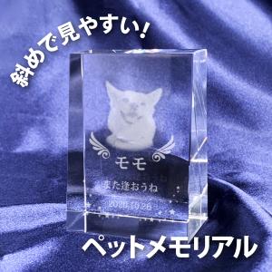ペット 遺影 位牌 天使の羽メモリアルmini 77mm クリスタルガラス 彫刻代込み /NK43523