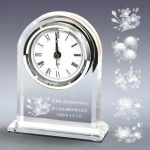 記念品 選べる3Dフラワー 名入れ クリスタルガラス 置時計 電波時計 アーチ型 メッセージ彫刻 還暦祝い 退職記念品 金婚式 銀婚式 彫刻代込み商品