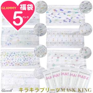 福袋 キラキラ マスク 50枚 不織布 MASK KING マスクキング 小顔 プリーツ ホワイト フラワー 音符 クローバー ローズ おしゃれ 大人 ふつう 平ゴム