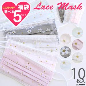 福袋 2026 マスク 不織布 21枚 モテま チュールレース キラキラ 花 フラワー 立体 3D 小顔 薄手 3層構造 レース おしゃれ 淡色 メール便送料無料