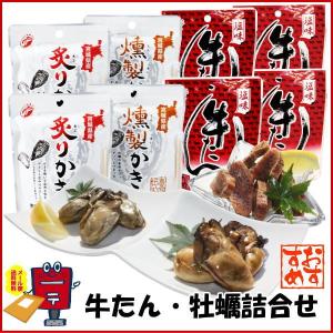 牛たん・かき詰合せ8P おつまみ牛たん4p、燻製かき2p、炙りかき2p ビールのおつまみに【メール便】