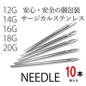 ニードル 10本セット 手芸 ピアス 工作用 練習用 清潔 アクセサリー製作 精密作業 工具 12G 14G 16G 18G 20G 追跡有