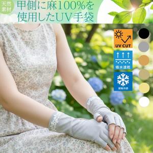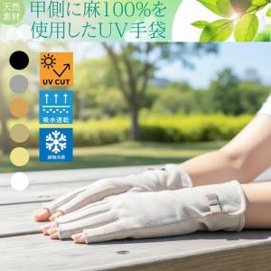 UV手袋 フィンガーレス 紫外線対策 甲部は麻100 天然繊維 肌に優しい 掌メッシュ滑り止め 日焼け防止 接触冷感 吸湿速乾 蒸れない 通気性 シャリ感 21cm 母の日
