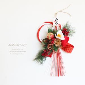 「送料無料」和洋風 お正月用リース 水引正月飾り 松 鶴 和モダン