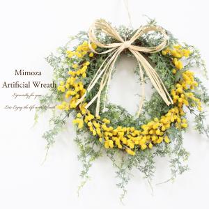 ミモザ リース 造花【Mサイズ】玄関 お洒落 アーティフィシャルフラワー