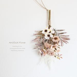 「送料無料」バラ コスモス ミニスワッグリース 壁掛け アーティフィシャルフラワー