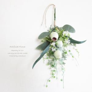 ユーカリの実&ハートカズラ ミニリース 壁掛け スワッグ おしゃれ 玄関ドア 送料無料 アーティフィシャルフラワー 造花 フェイクグリーン 観葉植物