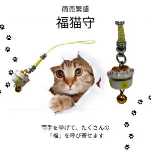 商売繁盛 招き猫 福猫守 猫のお守り 招福 千客万来 三毛猫 縁起の良い猫の御守り 金運アップ 開運 根付 ストラップ かわいい