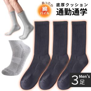 靴下 メンズ ビジネス 黒 厚手 綿 ビジネスソックス ビジネス靴下 あったか靴下 底厚 パイル 暖かい 保温 秋 冬 24.5-27.5cm 3足 セット 爆買
