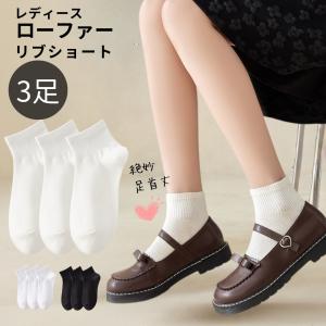 靴下 レディース 綿 黒 白 セット ショート 足首 ショートソックス 短め リブ ソックス リブ ローファー 革靴 スニーカー スクール 通学 春 夏 秋 3足