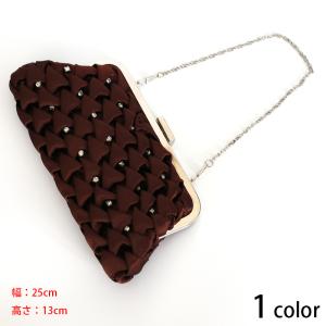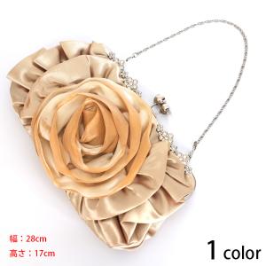 訳あり商品 ローズコサージュサテンパーティーバッグ クラッチバッグ ガマ口 バッグチェーン付き 結婚式 二次会 パーティー フォーマル ホワイトデー