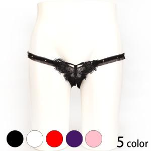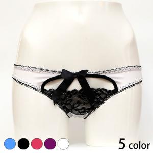 フロントでレースの隠して穴開きTバック (メール便可) Tバック ショーツ セクシー レディス フルバック サテン レース ホワイトデー