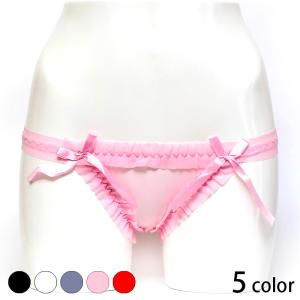 バックで穴開きフリルたっぷりとフロントでリボン付きのショーツ ビキニ ショーツ セクシー レディス フルバック サテン レース 下着 ホワイトデー
