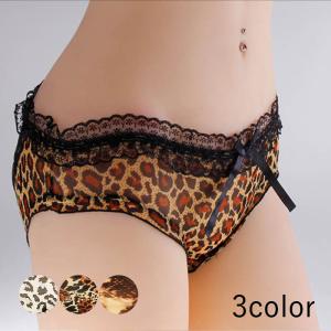 ヒョウ柄なサテン素材のブリーフショーツ (メール便可)ショーツ セクシー レディス フルバック サテン レース フリル 下着 ホワイトデー