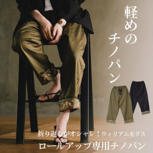 チノパン ロールアップパンツ ゆったり パンツ ウイリアムモリス ボトムス ロング 長ズボン レディース オシャレ 楽ちん いちご泥棒 国産 40代 50代 60代 爆買