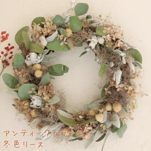 アンティークカラーの冬色リース ◆ クリスマスリースにも♪ピンクベージュのミナヅキとスモークツリーとユーカリドライフラワーリース