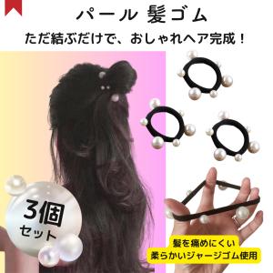 ヘアゴム パール 真珠 3個セット ジャージゴム ブラック 髪ゴム 可愛い まとめ髪 韓国風 上品 オフィス 通勤 小物 大人
