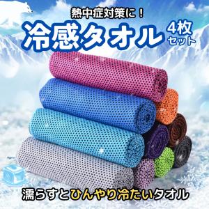 冷感タオル 4枚セット 水に濡らしてひんやり続く 冷却 熱中症対策