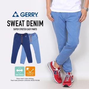 ジョガーパンツ メンズ GERRY 伸縮 スーパーストレッチ スウェット インディゴ デニム 裾リブ イージーパンツ ジェリー