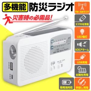 防災ラジオ FM AM 懐中電灯 SOSアラーム付き バッテリー機能搭載 非常用 ソーラー発電 手回し発電 USB充電 乾電池給電