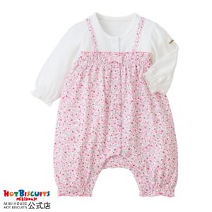 ミキハウス 花柄 7分丈カバーオール ピンク 70cm 80cm ホットビスケッツ HOT BISCUITS