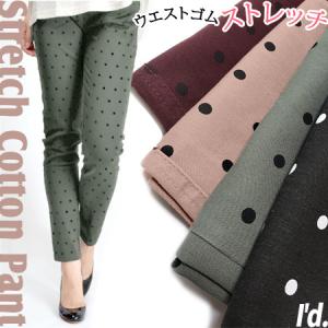 美脚 レギンス パンツ 綿素材 カラーパンツ 水玉 ドット レギパン ウエストゴム ロールUPでクロップドパンツ スキニー 綿パンツ 春夏秋 レディース4102