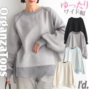 【即納】綿混 ふわ袖 ラグラン オーガンジー レイヤード 二重 二の腕ゆったり ワイド幅 トップス バルーン 長袖 プルオーバー トレーナー レディース【6327】