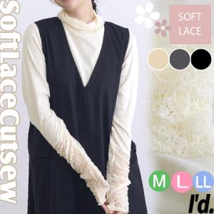 綿混 リブ 袖口&首周り やわらかレース切替 フライスレース フリル 長袖 Tシャツ ハイネック カットソー 無地 ロンT レディース インナー 秋冬 M L LL 9628