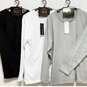 【メール便送料込】長袖Tシャツ丸首(M・L・LL寸あり)綿混天竺編み(黒・グレー・白の3色あり)